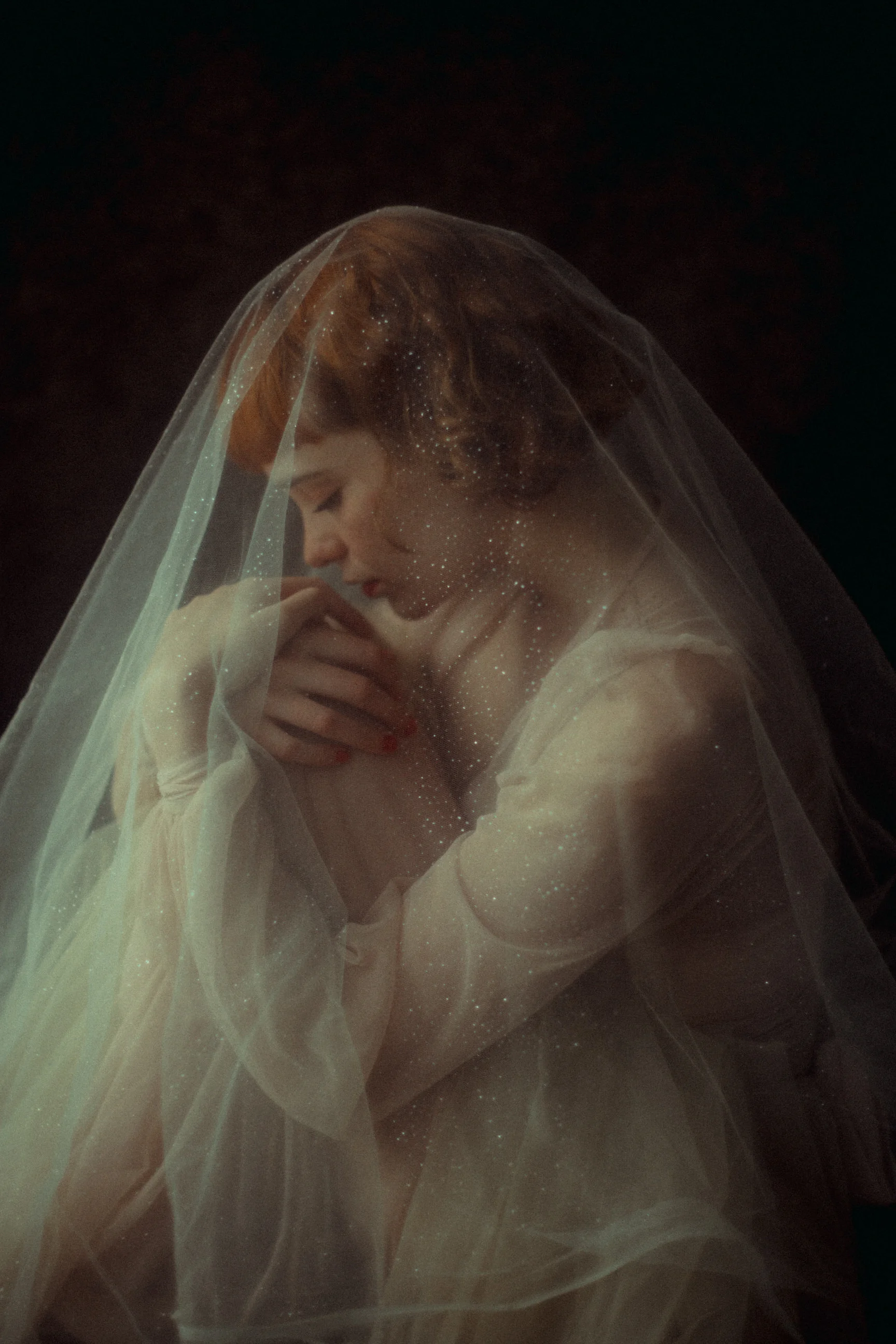 Debo decir que al final el resultado fue agradable y creo que todos estuvieron a gusto con la realización de estas fotografías, la luz de ventana era suave y el tul daba ese efecto soñador, esto generó esa atmósfera sublime.