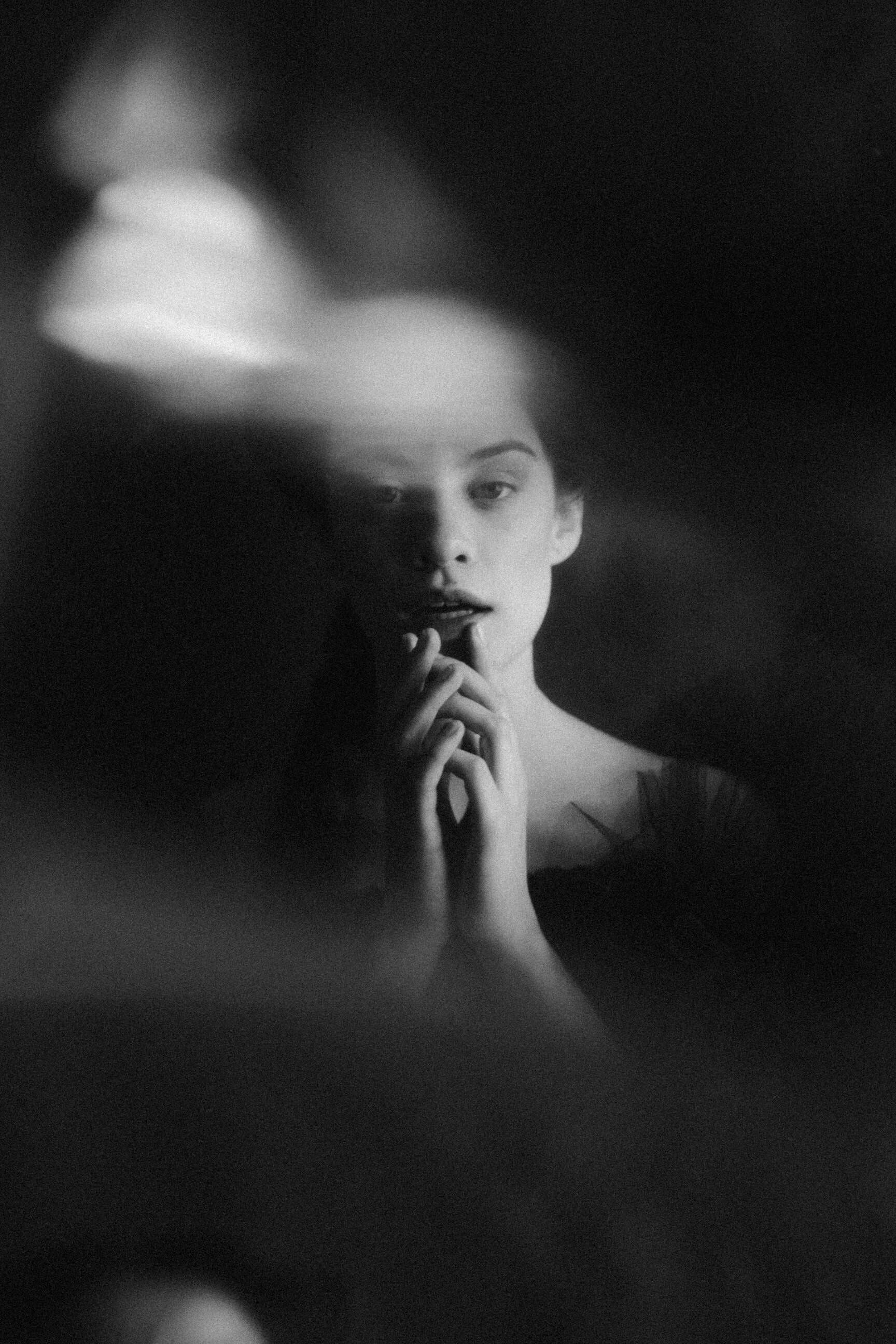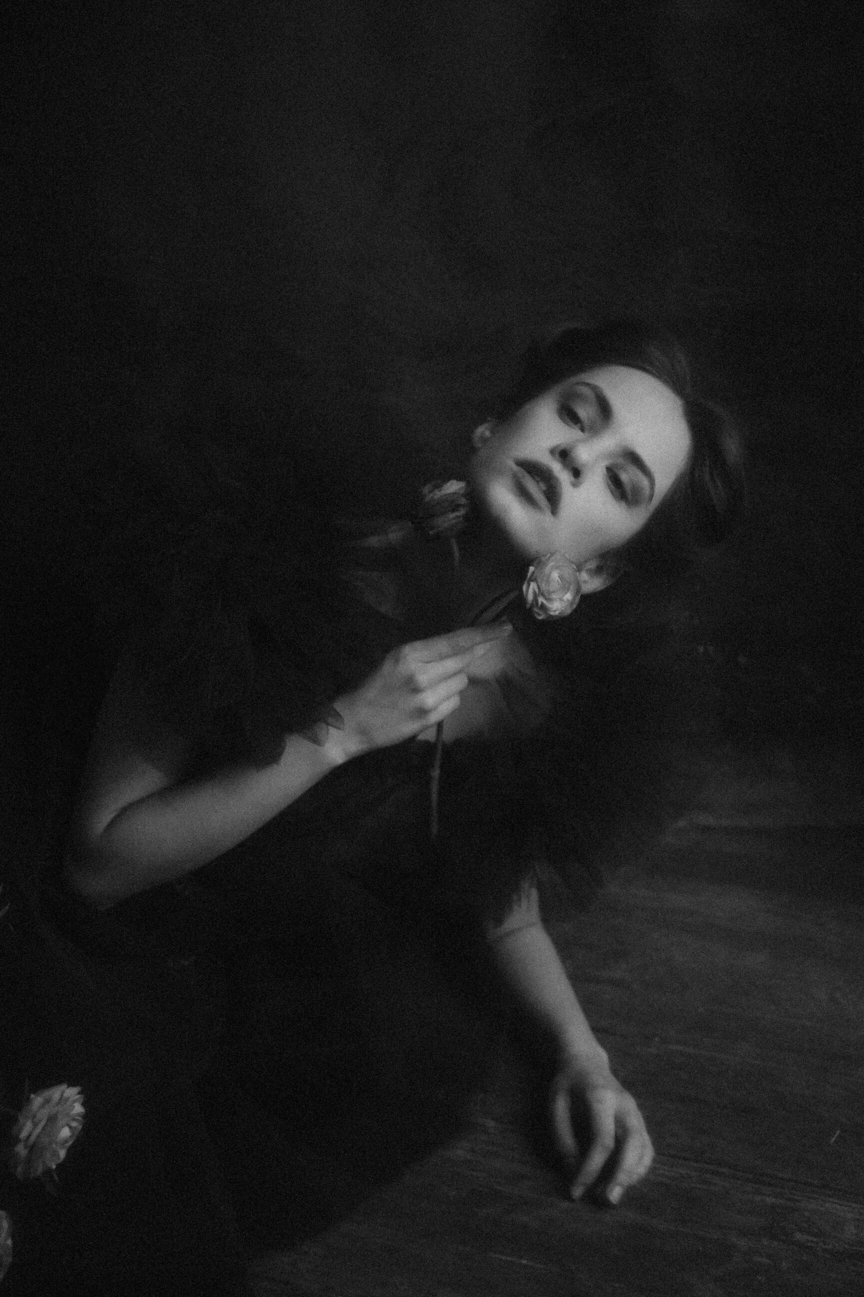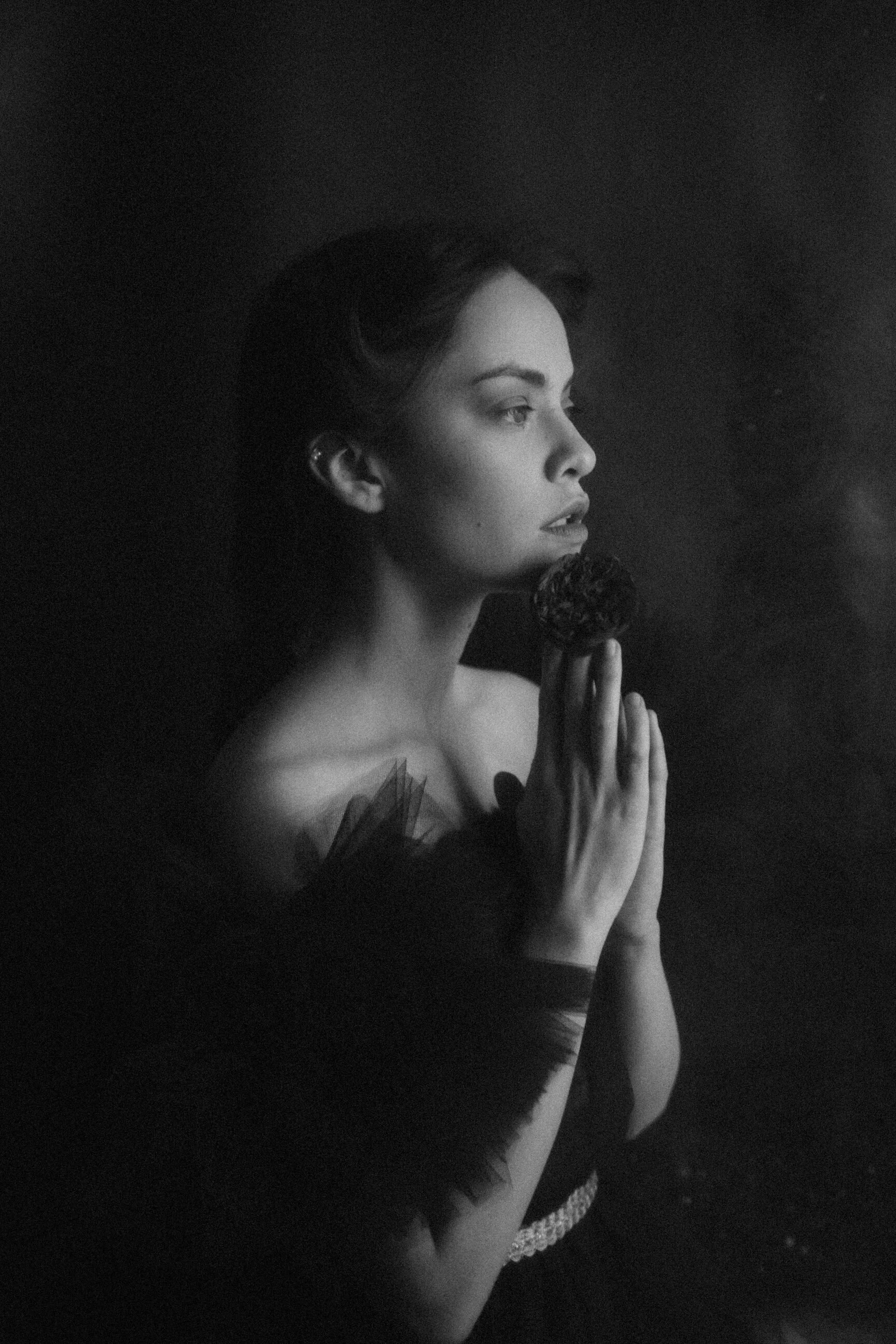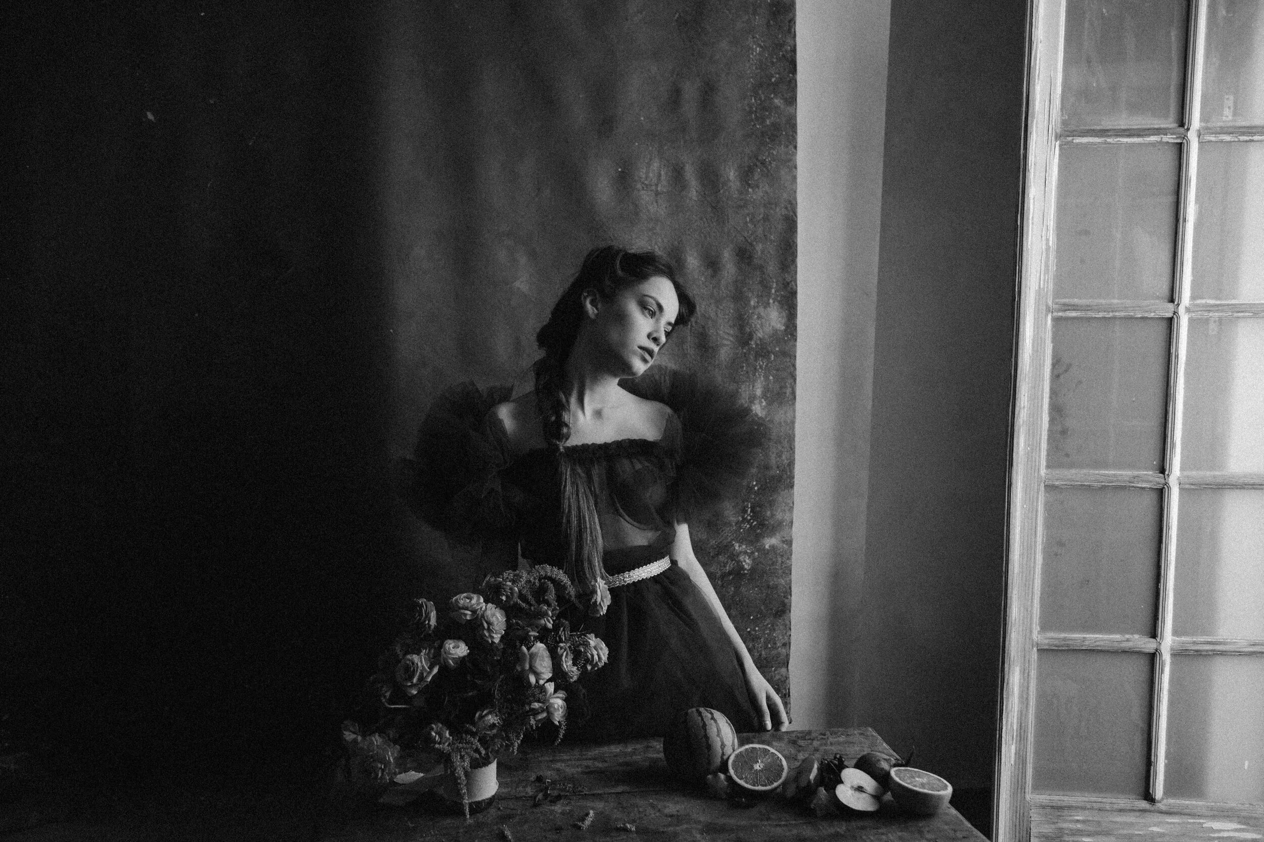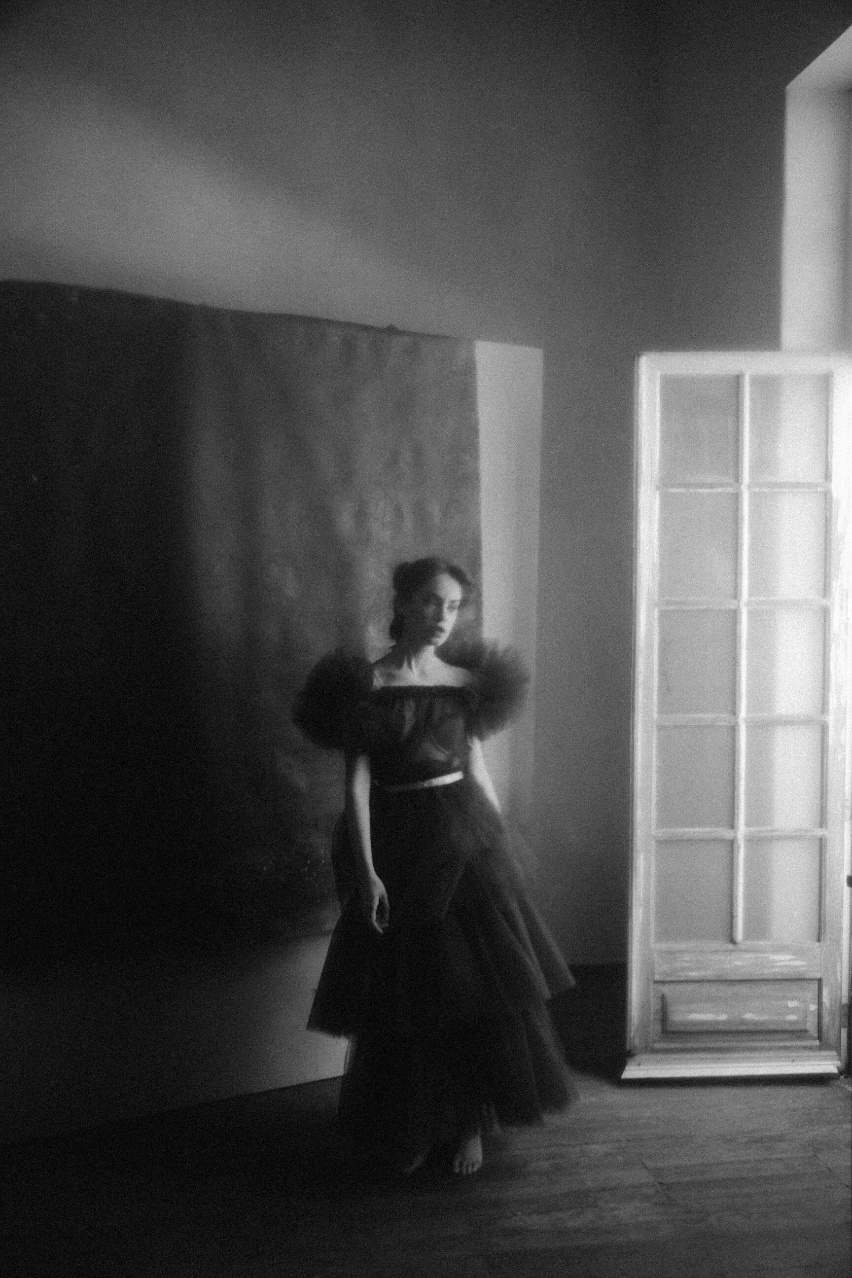 Estas imágenes en blanco y negro son parte de ese archivo: algunas capturan a María en su estado más natural, fuera de personaje, mientras que otras encarnan exactamente la visión que yo buscaba. Entre esa dualidad se teje la esencia de esta sesión. Las comparto ahora como una forma de recordar que, incluso bajo presión, la conexión auténtica siempre encuentra la manera de revelarse.