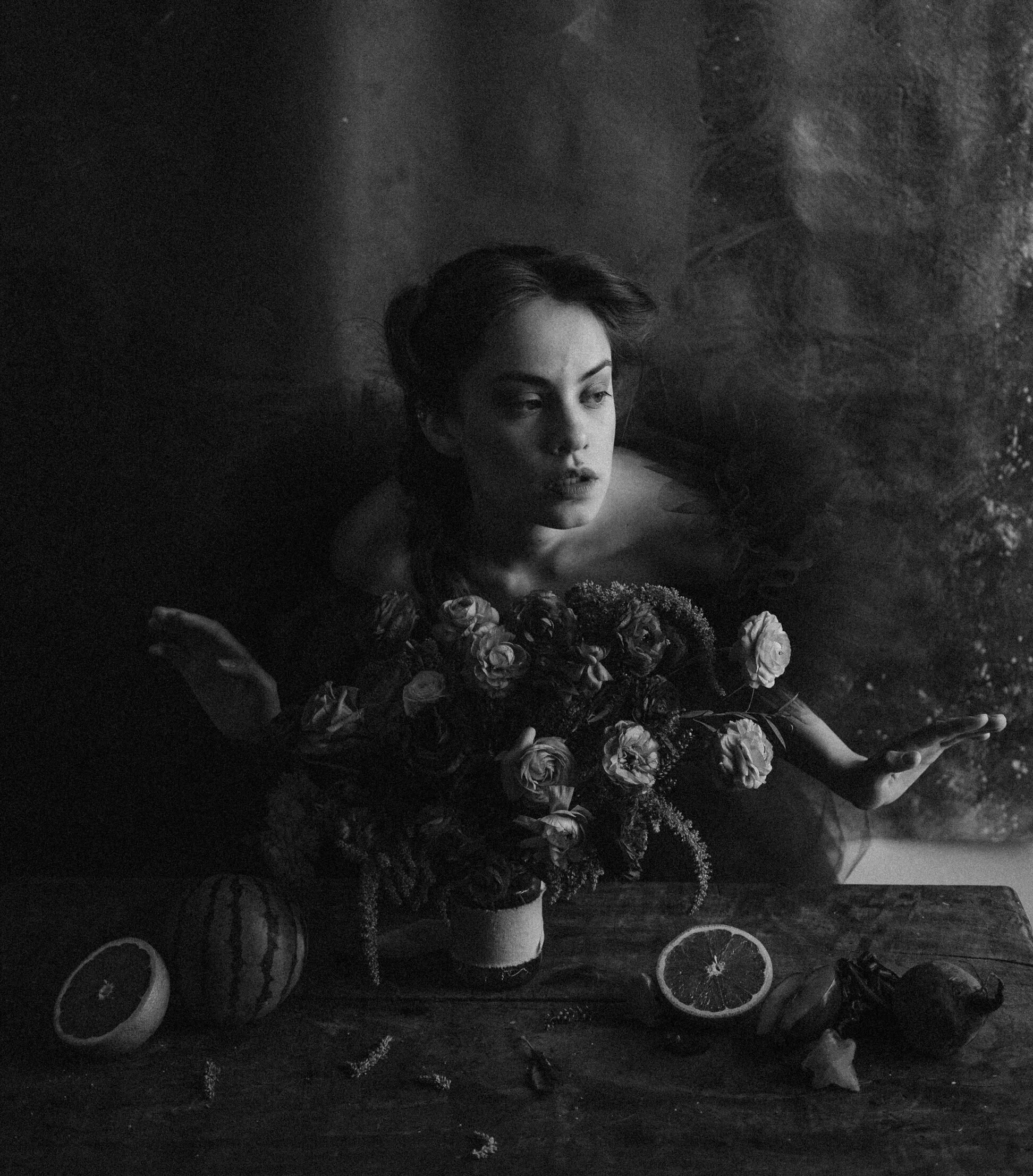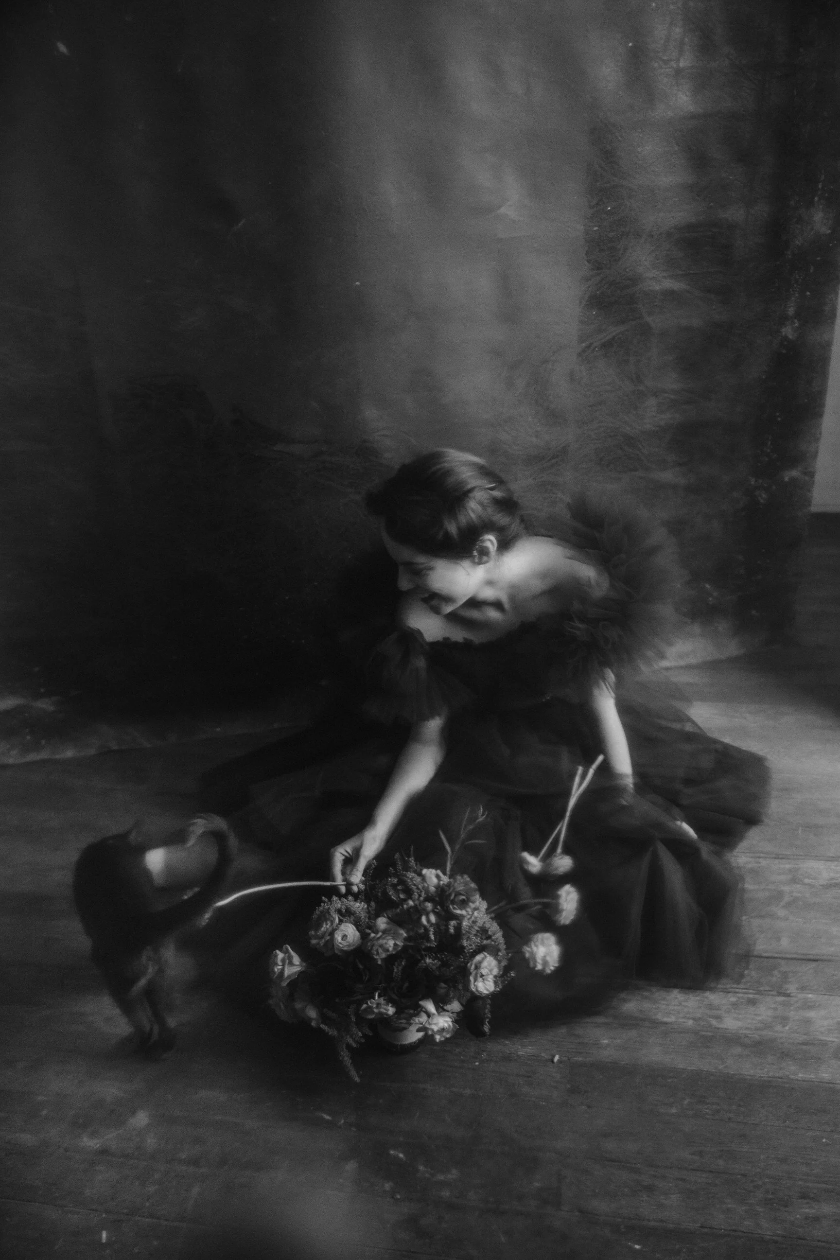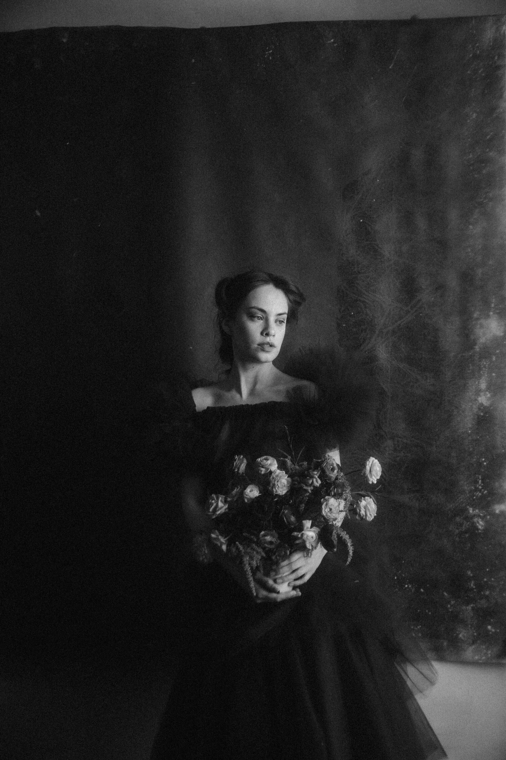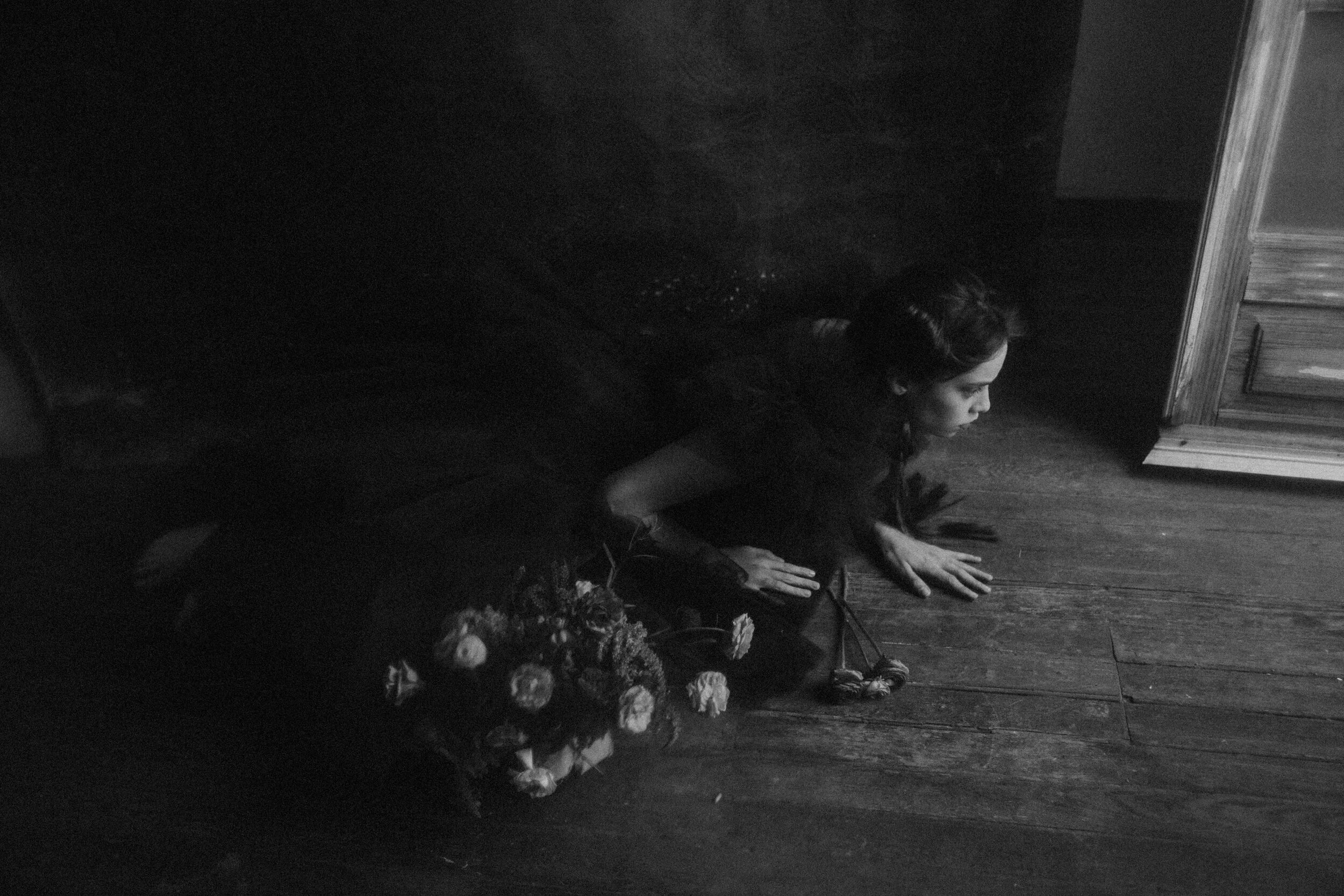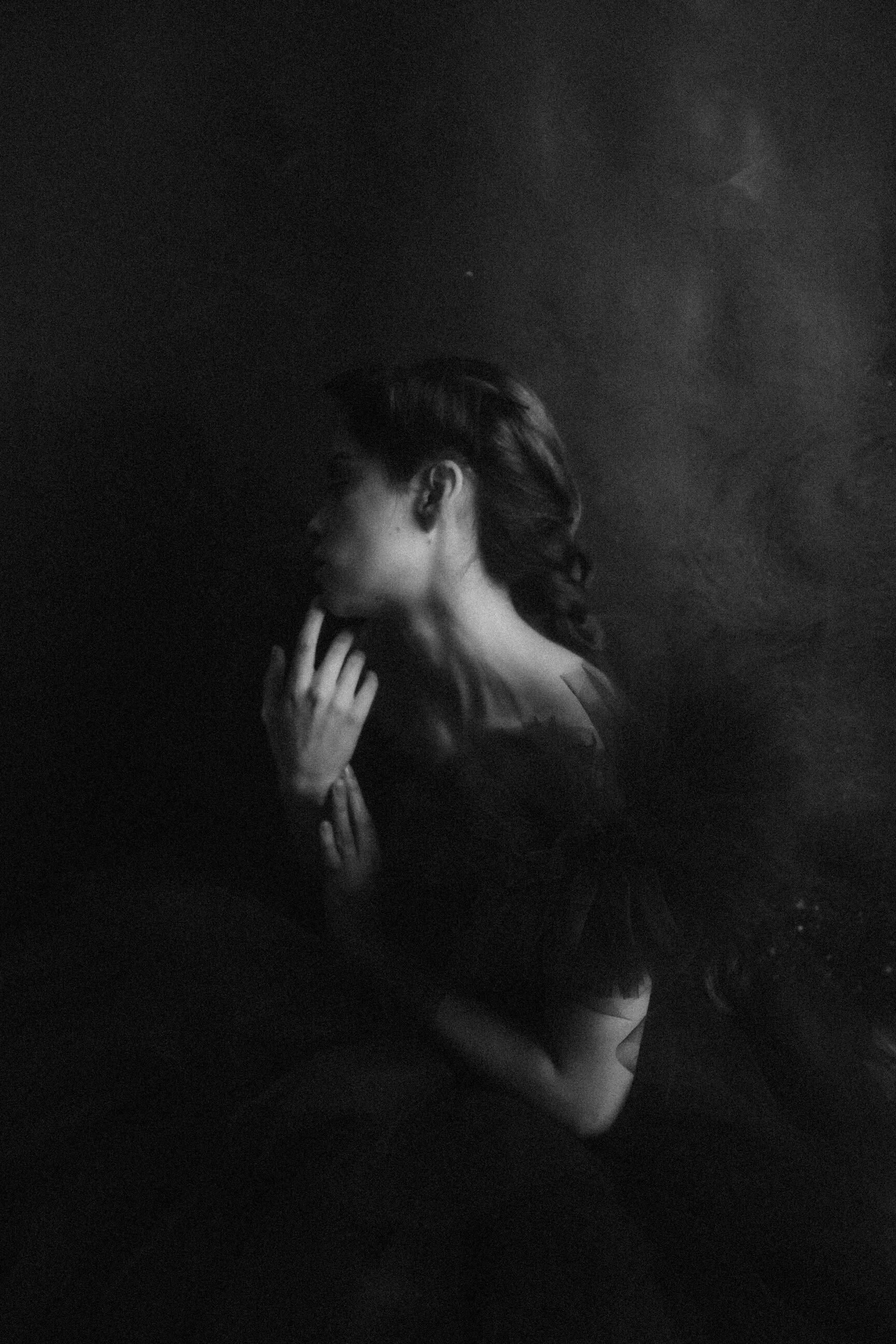 Estas imágenes en blanco y negro son parte de ese archivo: algunas capturan a María en su estado más natural, fuera de personaje, mientras que otras encarnan exactamente la visión que yo buscaba. Entre esa dualidad se teje la esencia de esta sesión. Las comparto ahora como una forma de recordar que, incluso bajo presión, la conexión auténtica siempre encuentra la manera de revelarse.