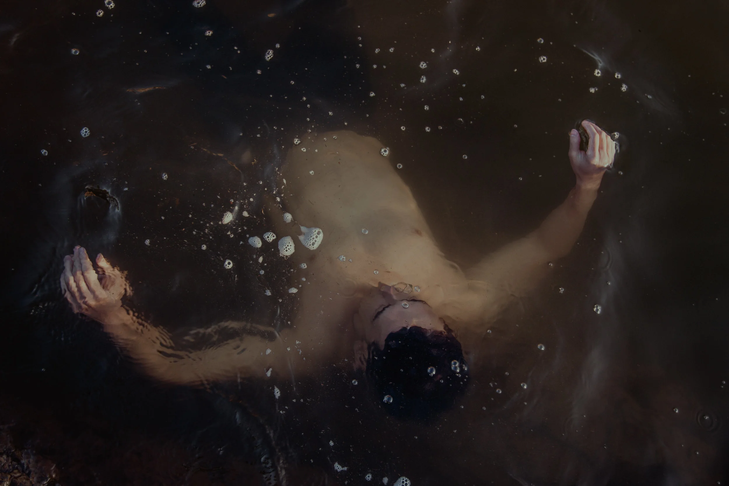 En la imagen del vidrio y el agua aparece Eduardo, sumergido en un día frío en Chihuahua. Arriba, el aire corría con fuerza; en el agua, era otra sensación. Difícil poner en palabras lo que significa estar sumergido en calma mientras todo alrededor es frialdad.